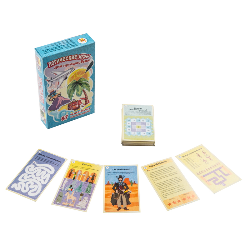 Как и следует из названия, игра отправляет ребенка в путешествие, где ему предстоит пройти через многочисленные лабиринты и загадки. Карты достаточно прочные и долговечные, чтобы их можно было всегда носить с собой и время от времени преподносить ребенку новую задачку. Все они сложены в специальную упаковку, облегчающую хранение и перемещение. Минимальный возраст игрока не должен быть меньше 3 лет, хотя если ваш малыш обладает достаточно развитым мышлением, можно попробовать и с более раннего возраста.