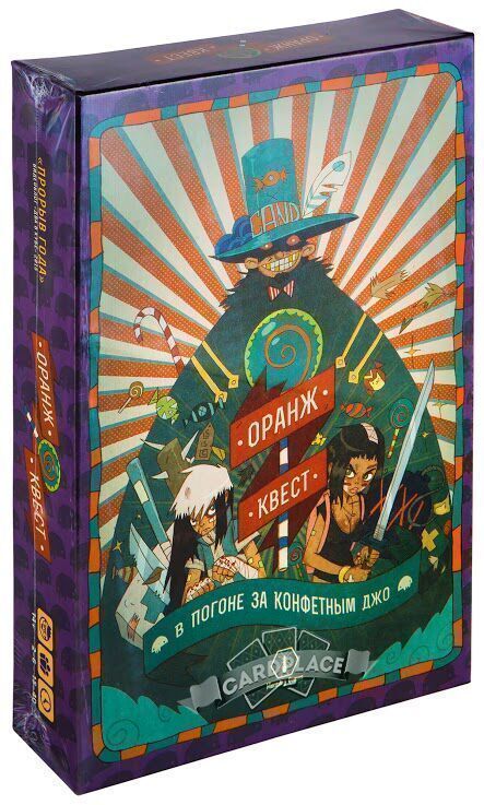 Настольная игра «Оранж Квест: в погоне за Конфетным Джо» повествует нам о смелых путешественниках, пустившихся в погоню за известным преступником, укравшим огромное количество конфет. Путешественников ждут интересные задания, увлекательные и опасные приключения. Но есть и приятное: их ждет масса сладостей. Игроки с помощью монетки выбирают первого героя, кто делает ход. Также именно монетка решает, какие задания выпадут на долю героев.